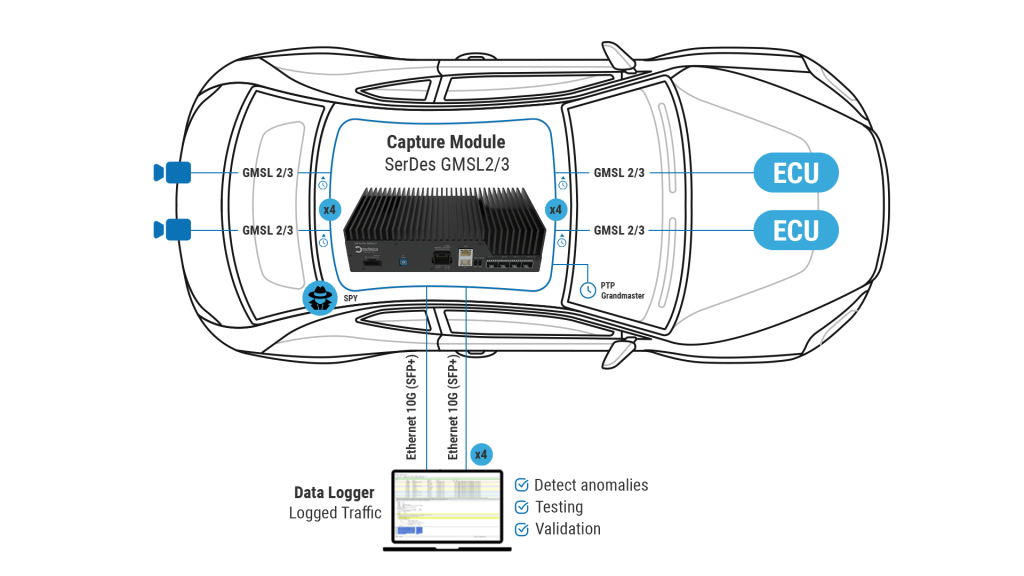 No interference of the Capture Module to the vehicle architecture, allowing its integration into dedicated recording cars without impacting the software running on the vehicle ECUs.